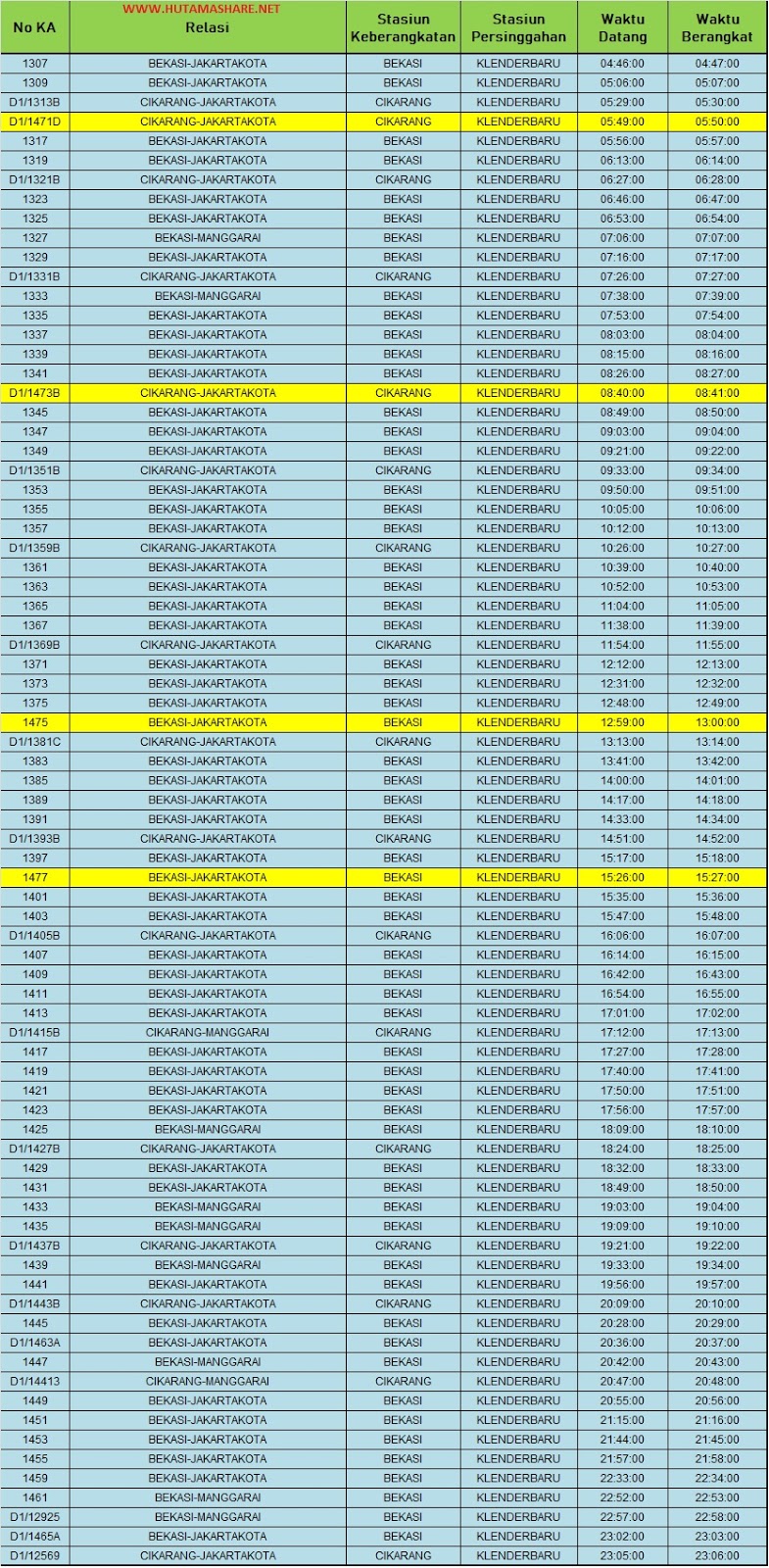 | Jadwal Lengkap Kereta Api KRL Commuterline Stasiun Klender Baru - Bekasi - Cikarang Terbaru 2019 |